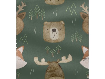 Stylový žebrovaný úplet Zvířecí hlavy na zelené 🐾🌿 – skvělý na čepice, nákrčníky, legíny i šaty. Pružný, pohodlný a s veselým vzorem plným zvířátek.