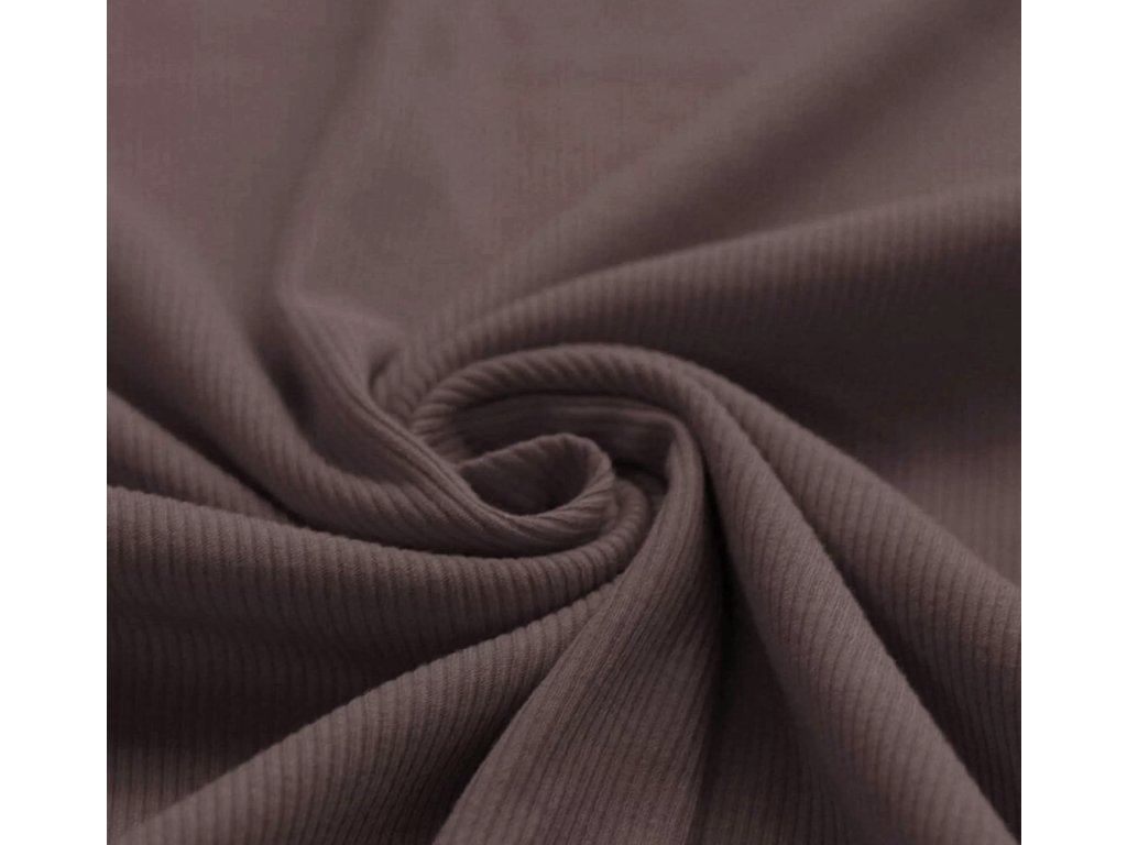 Úplet-Žebrovaný Mauve tmavá je pružný a pohodlný materiál se žebrovanou strukturou, který pěkně přiléhá k tělu a zároveň drží tvar. Hodí se na trička, šaty, legíny, čepice a nákrčníky pro děti i dospělé. Díky směsi bavlny s elastanem je příjemný na dotek, prodyšný a snadný na údržbu – ideální pro každodenní nošení.