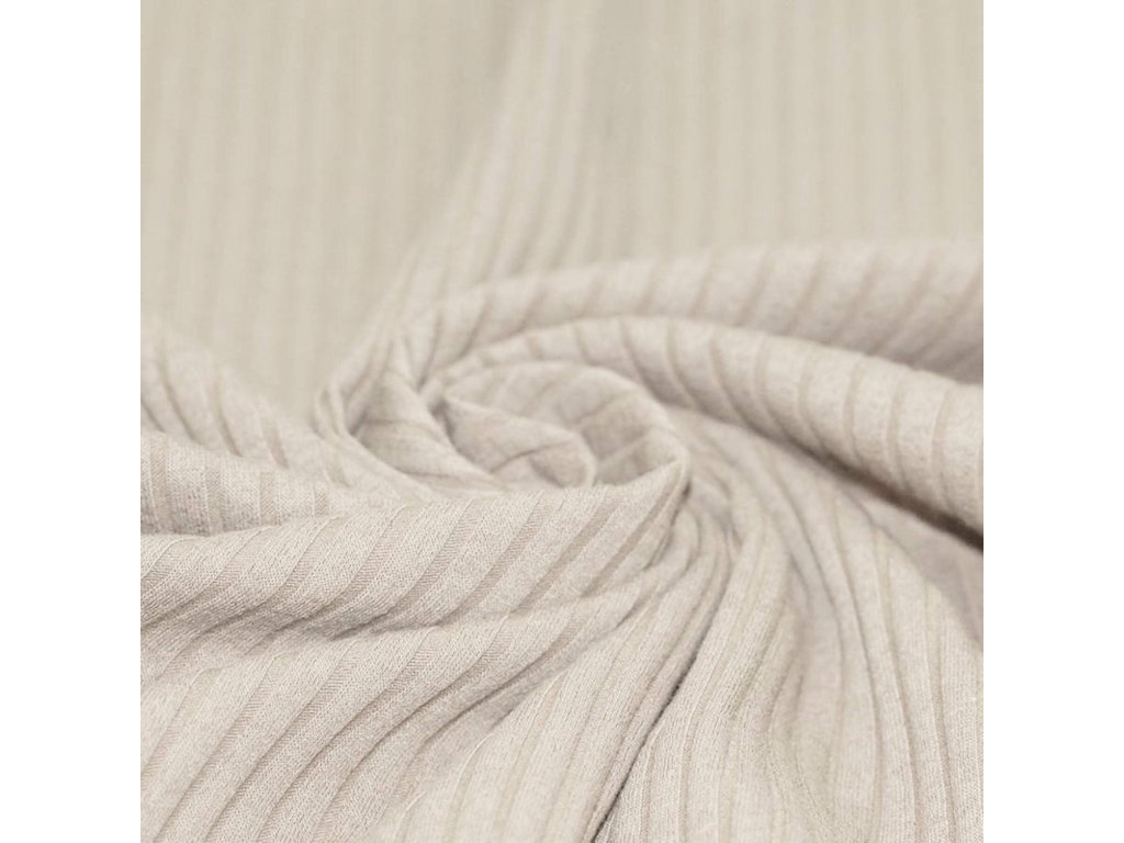 Úplet-Žebrovaný široký Smetanová je pružný a pohodlný materiál se žebrovanou strukturou, který pěkně přiléhá k tělu a zároveň drží tvar. Hodí se na trička, šaty, legíny, čepice a nákrčníky pro děti i dospělé. Díky směsi bavlny s elastanem je příjemný na dotek, prodyšný a snadný na údržbu – ideální pro každodenní nošení.