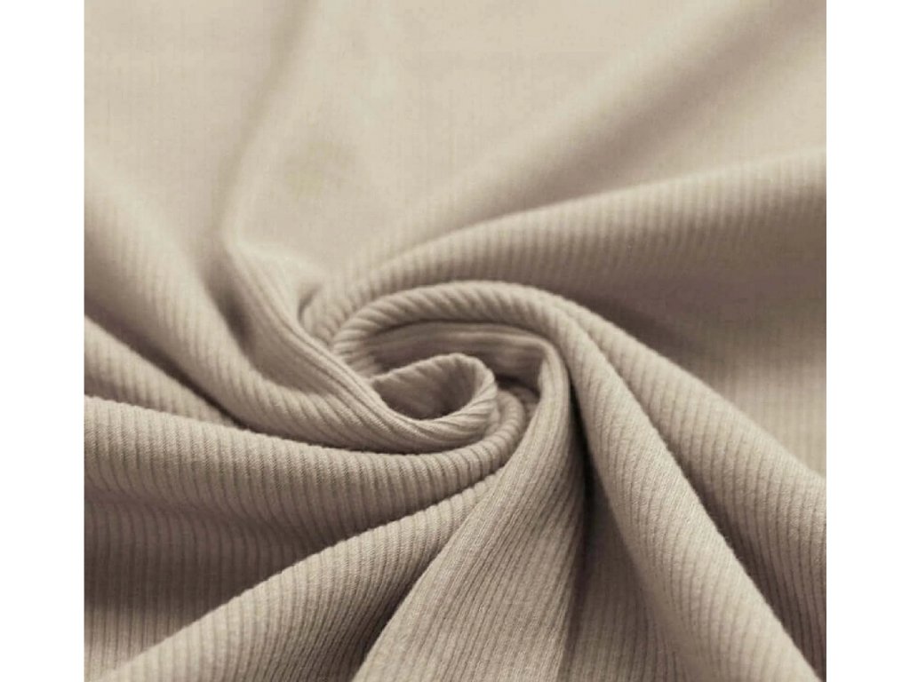 Úplet-Žebrovaný Cappucino je příjemná a pružná látka vhodná na trička, šaty i dětské oblečení. Snadno se kombinuje s dalšími materiály a dobře drží tvar.