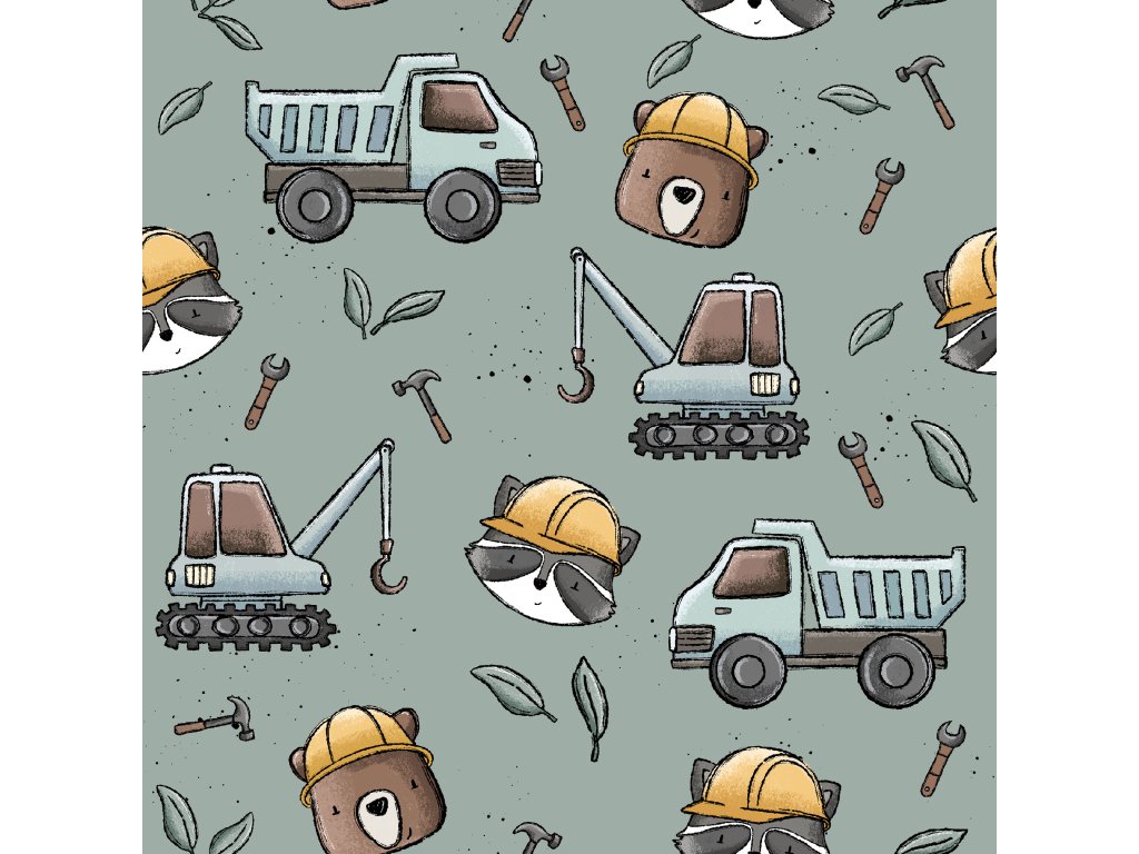 Tento jemný a pružný úplet potěší všechny malé milovníky bagrů a techniky! 🚜🐾 Roztomilá zvířátka v pracovních helmách dodávají látce hravý charakter a kombinace jemných barev zaručuje, že výsledné oblečení bude působit vkusně a sladěně. Ideální na trička, šatičky, legíny i tenké mikiny.