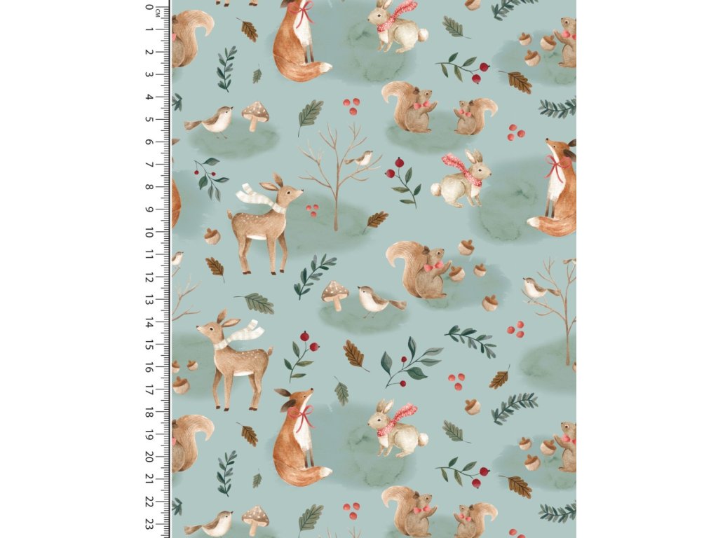Úplet - Zvířátka v zimě na zelené je měkký a prodyšný úplet, vhodný na trička, šaty, pyžama i dětské oblečení. Materiál je poddajný, příjemný k pokožce a dobře se šije, takže je vhodný i pro začínající švadleny. Snadno jej zkombinujete s jednobarevnými i vzorovanými látkami.
