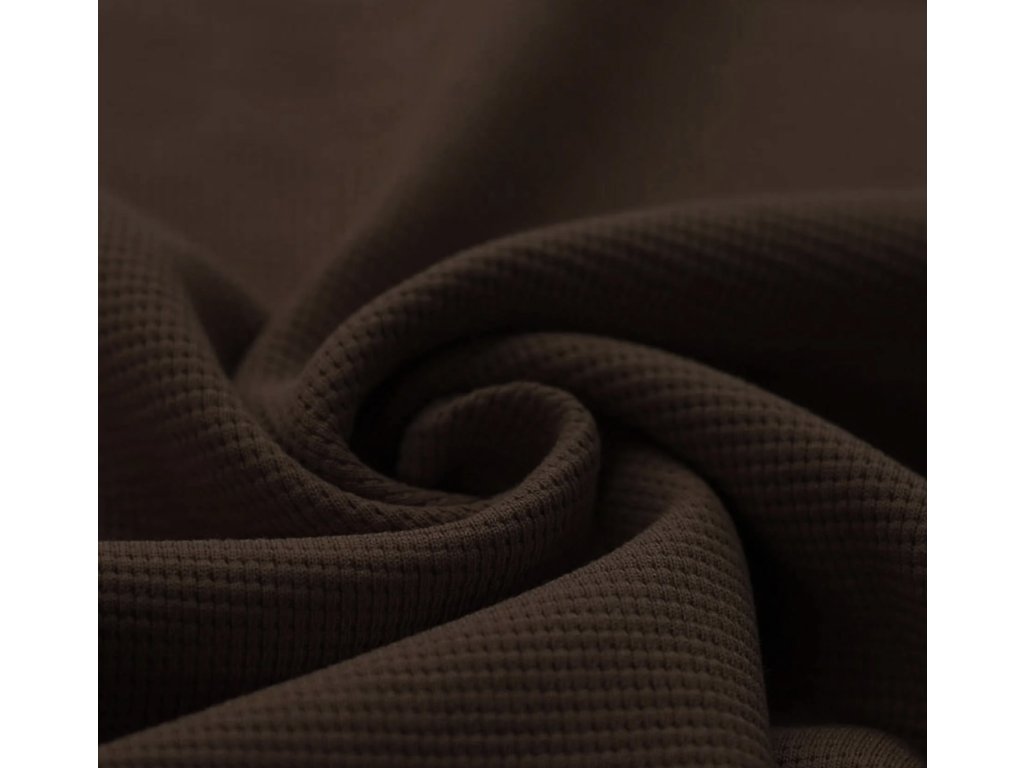 Wafle- Tmavě hnědá je měkký a prodyšný úplet, vhodný na trička, šaty, pyžama i dětské oblečení. Materiál je poddajný, příjemný k pokožce a dobře se šije, takže je vhodný i pro začínající švadleny. Snadno jej zkombinujete s jednobarevnými i vzorovanými látkami.