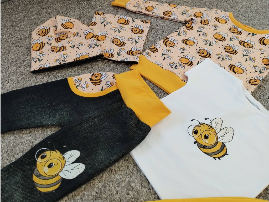 Měkký, pružný a krásně strukturovaný – přesně takový je žebrovaný úplet s motivem roztomilého čmeláka s brýlemi. 🐝🕶️ Tento hravý autorský vzor dodá každému oblečení špetku originality a hravosti. Skvěle se hodí na náplety, trička, body nebo stylové dětské oblečení.