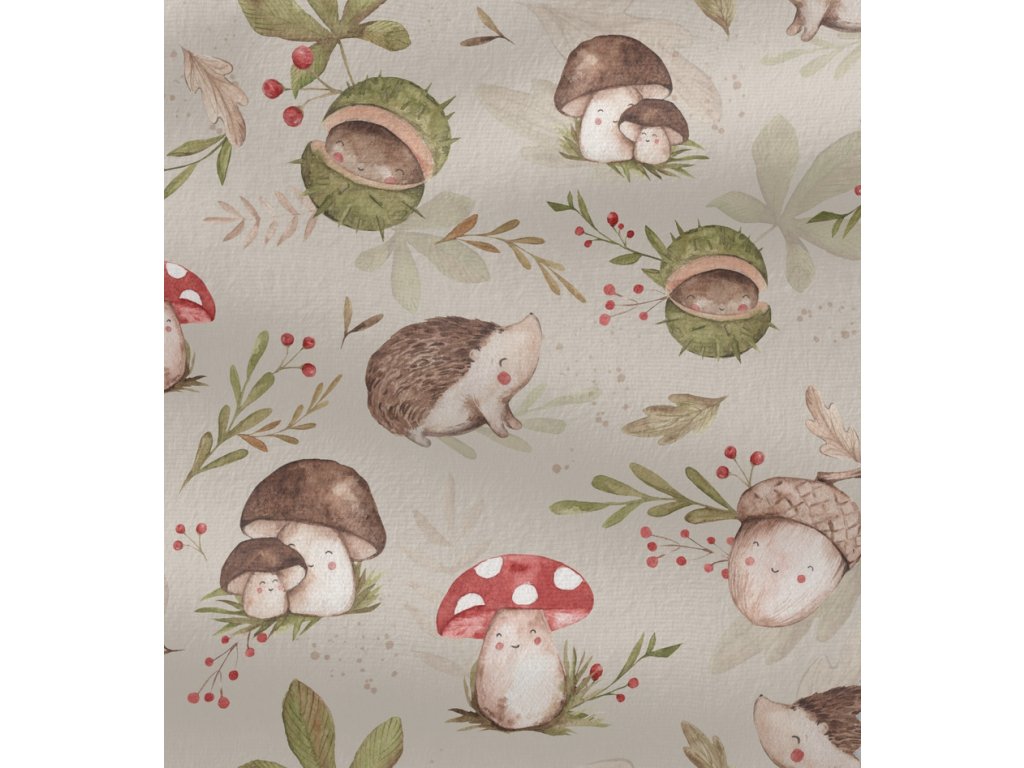 Žebrovaný úplet - Ježek s kaštany 0,35 m je příjemná a pružná látka vhodná na trička, šaty i dětské oblečení. Snadno se kombinuje s dalšími materiály a dobře drží tvar.