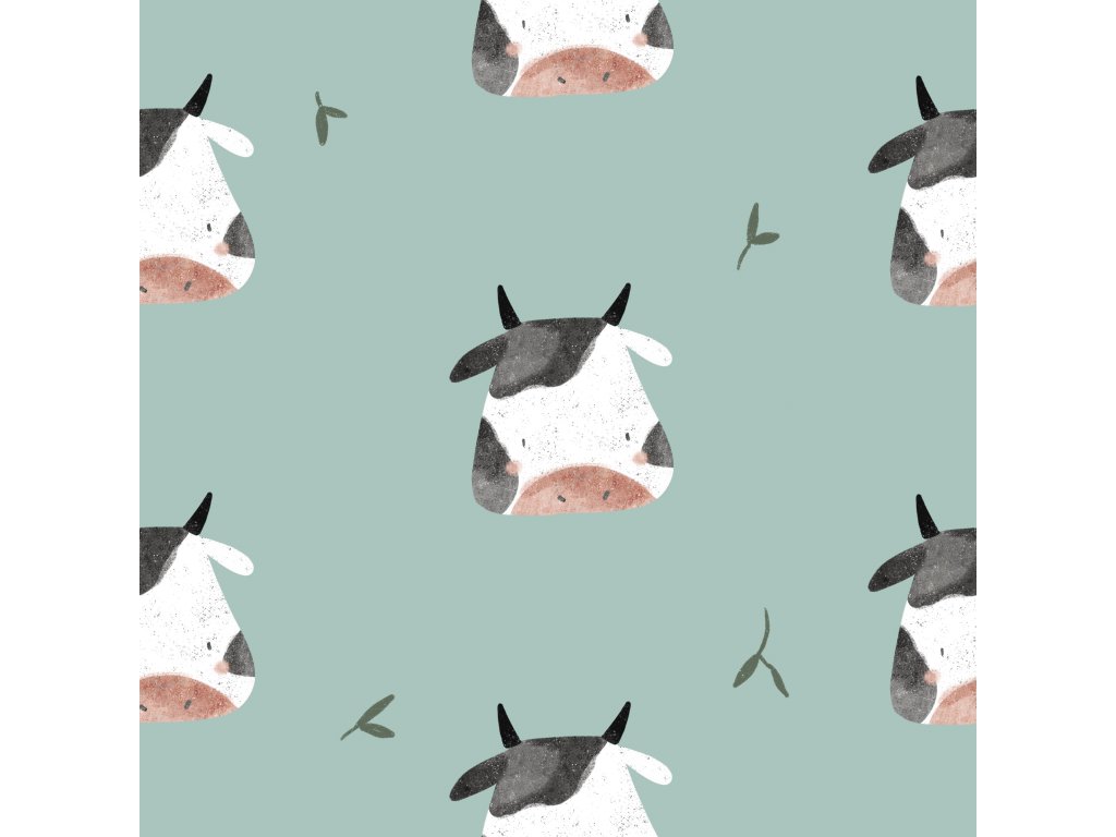 Žebrovaný úplet - Kravičky je příjemná a pružná látka vhodná na trička, šaty i dětské oblečení. Snadno se kombinuje s dalšími materiály a dobře drží tvar.