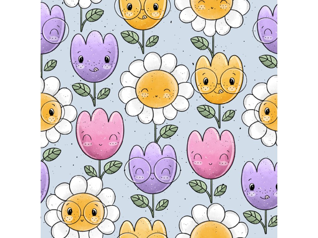 👕 Žebrovaný úplet - Kytičky s brýlemi