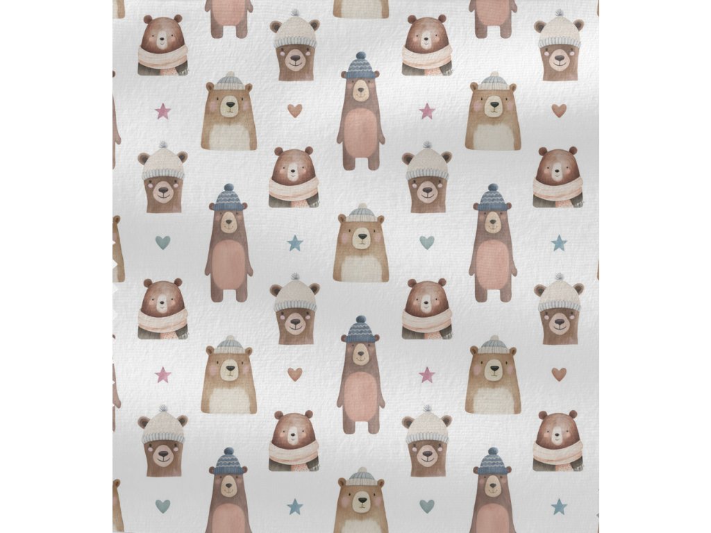 👕 🐻 Žebrovaný úplet - Medvědi v kulichu