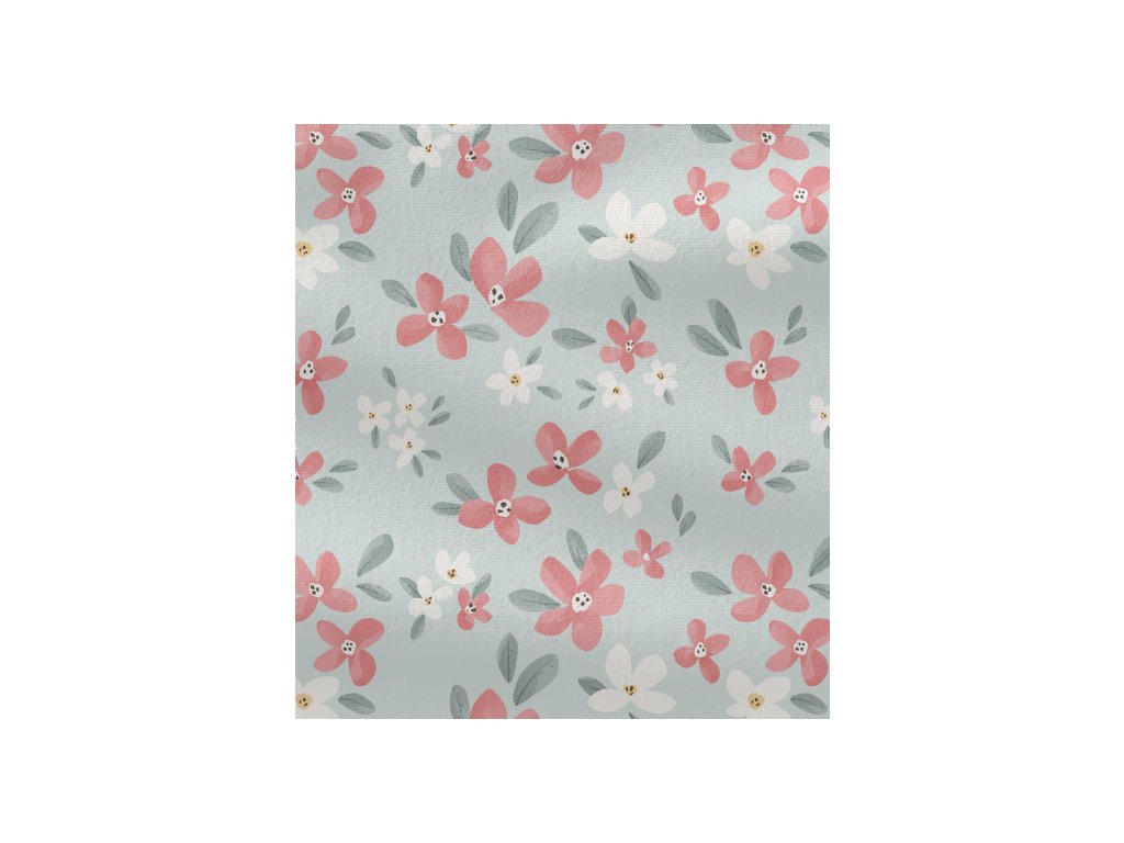 👕 🌸 🔵 Žebrovaný úplet - Růžové květy na modré