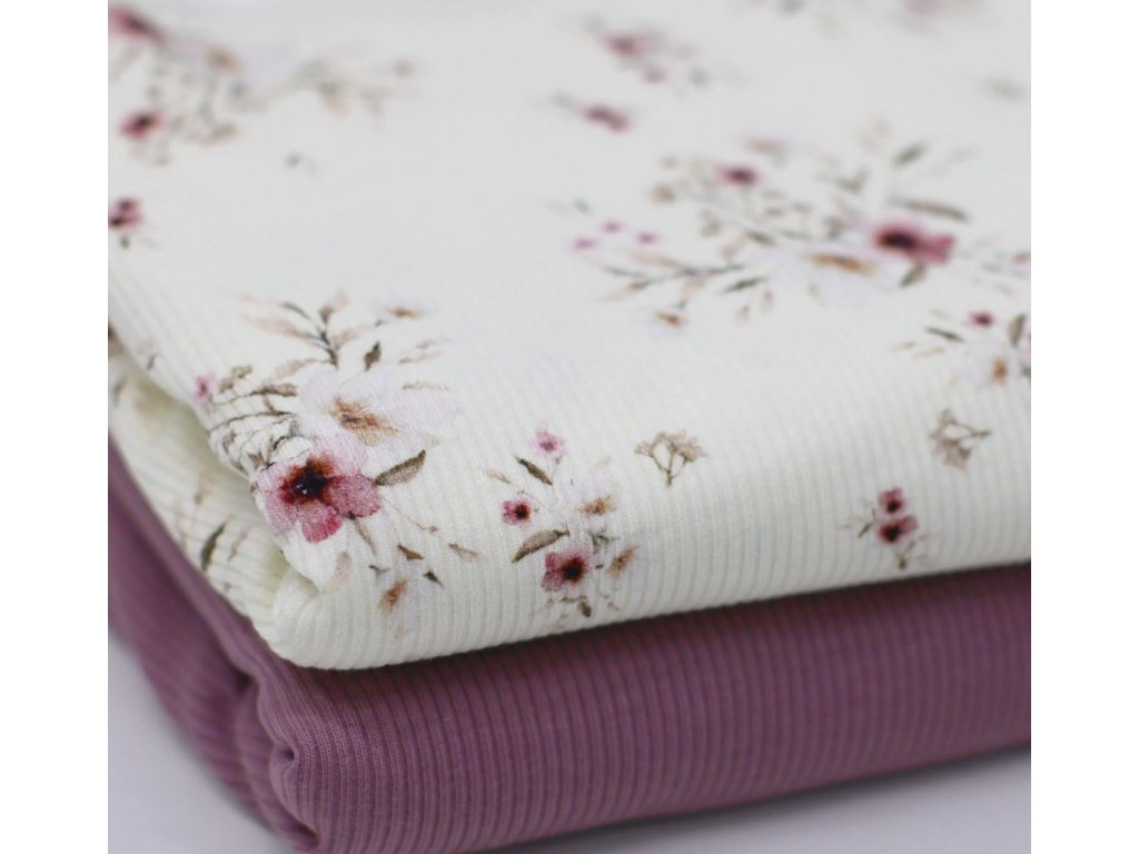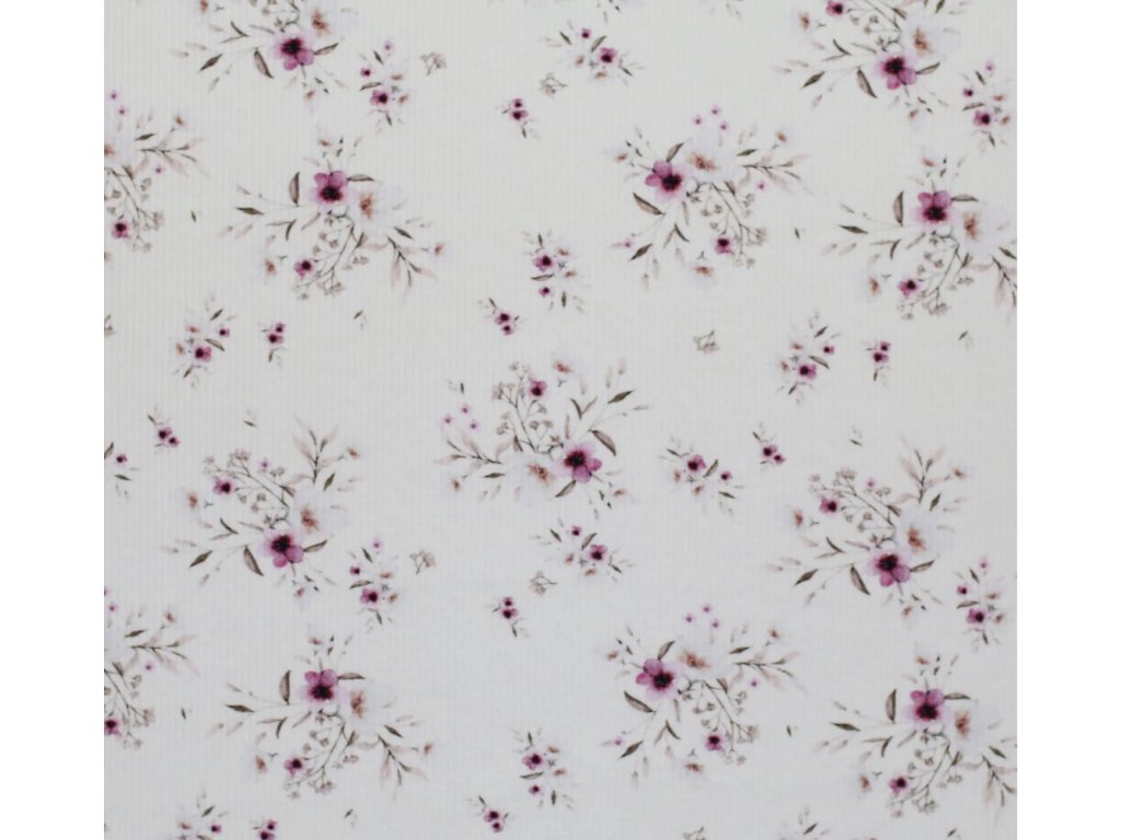Romantický žebrovaný úplet s motivem třešňových květů vnese do vašich projektů jemnost a svěží jarní atmosféru. Díky žebrované struktuře je látka pružná, přizpůsobivá a velmi příjemná na nošení. Skvělá volba pro trička, šaty, legíny nebo dětské oblečení.