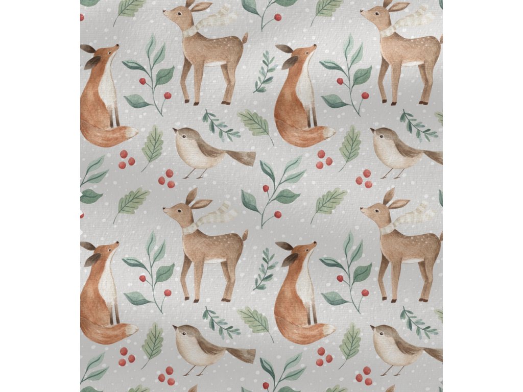 👕 Žebrovaný úplet - Zvířátka v zimě
